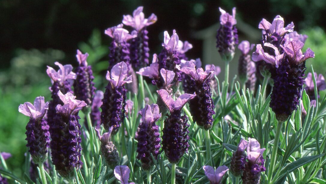 In the garden, Lavandula is a low-maintenance evergreen shrub that brings many benefits, from the masses of beautiful flowers in shades of purple or white to the silvery grey-green foliage. Lavender is loved by wildlife, attracting bees, butterflies and more. Lavandula stoechas (French lavender) varieties are less hardy than the English ones. They are easily distinguished in appearance, thanks to the distinctive tufted bracts at the top of each flower and grey serrated foliage.
