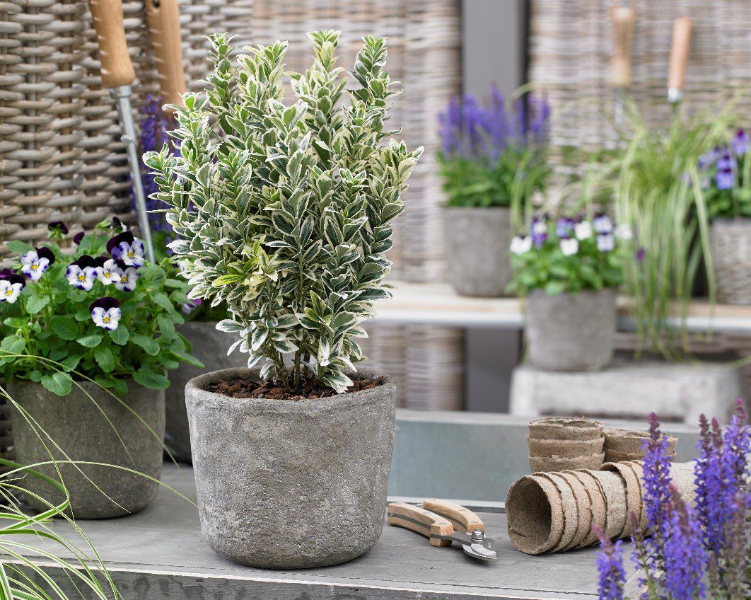Certain varieties of Euonymous give you the best of both worlds when it comes to Wimbledon colour. Variegated leaves of green with a striking white border create a wonderful backdrop for beautiful purple flowers of other plants and it works well when grown as a low hedge, standalone specimen or in a patio pot.