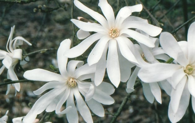 Magnolia stellata varieties such as ‘Royal Star’ and ‘Waterlily’ have generally white, star-shaped flowers, while M. liliflora and M. loebneri varieties such as ‘Leonard Messel’ and ‘Susan’ have cup-shaped blooms and offer a range of colours in pinks and purples. Rarer varieties with yellow flowers are becoming more available; look out for a variety called ‘Yellow Bird’. Evergreen Magnolias (varieties of M. grandiflora) are better suited to a Mediterranean climate and are rather more sporadic in their flowering.
