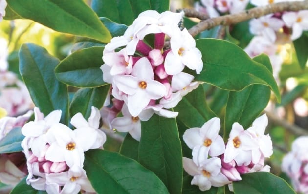 In the opinion of many, this is the best spring-flowering shrub of all. Daphne flowers are usually small, white or pink, and extremely fragrant. Paradoxically, they are quite straightforward in the garden despite being very difficult to produce commercially, which means they command quite a high price.