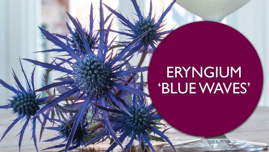Eryngium ‘Blue Waves’ is a hybrid; a blend of Eryngium bourgatii and Eryngium alpinum which was first cultivated in 2002 after two plants, growing close to each other, resulted in 11 hybrid seedlings. One of these was then selected due to its strong, upright stems and large bracted flower cones, surrounded by a number of successive flowers.