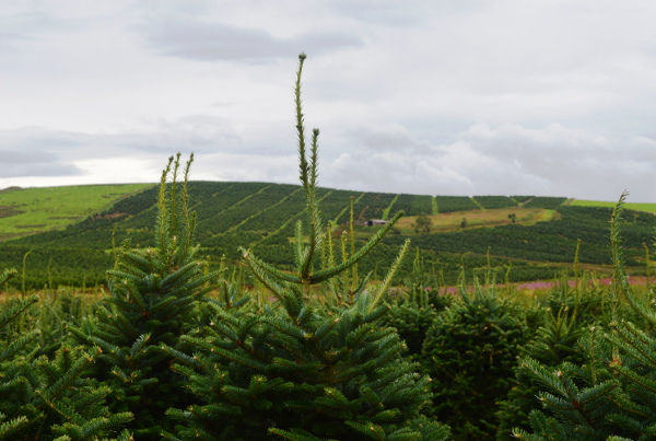 Christmas trees are crops grown on specialist farms, just like cauliflower or wheat. They are not cut down from wild forests but come from environmentally managed plantations. These plantations often stretch across rolling hills, where Christmas trees grow best. Amongst terrain that is often unsuitable for other crops, which helps keep pests and diseases away.
