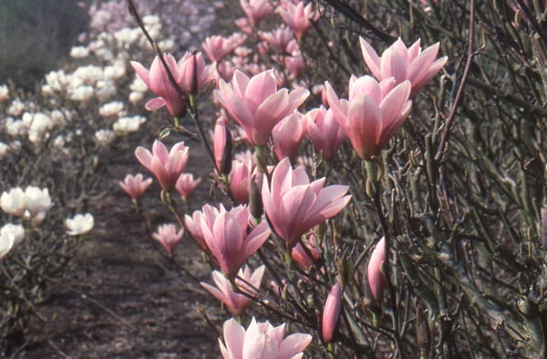 One of the magnificent mature magnolias in full spring bloom at Sir Harold Hillier Gardens