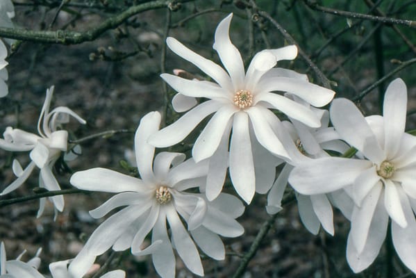 Also known as star magnolia, this is a hardy, slow-growing deciduous shrub variety with a broadly rounded habit. Growing to just 1.5 metres in height, this is a more compact variety, ideal for smaller spaces or gardens. The green leaves are narrowly obovate and the flowers in spring are white, with spreading white tepals. Place in a mixed border, spring garden or position as an architectural centrepiece.