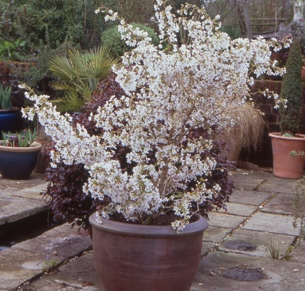 Prunus ‘Tai-haku’ is a magnificent flowering cherry that can reach a height of 8m. In spring, it produces clusters of white, scented flowers in combination with a bronze new leaf. It does need space – this is not the best choice for a small garden – but otherwise, it is a reasonably easy plant to care for and very hardy.