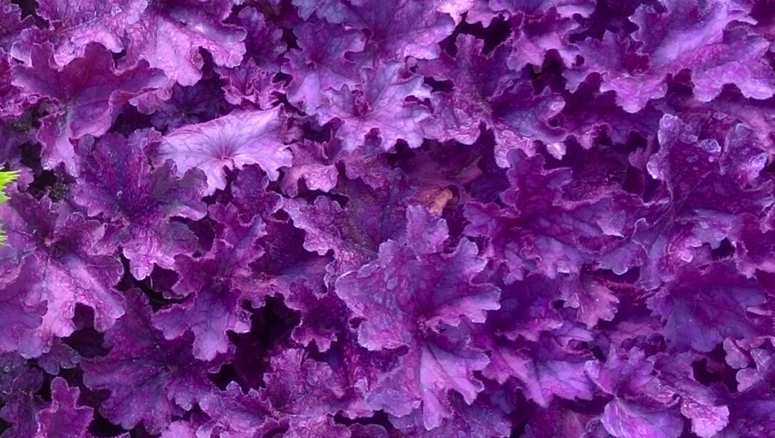 Heuchera ‘Forever Purple’ is complemented if you plant with ferns, hellebores or hostas as their natural green colour provides a muted background for the Heuchera to shine.