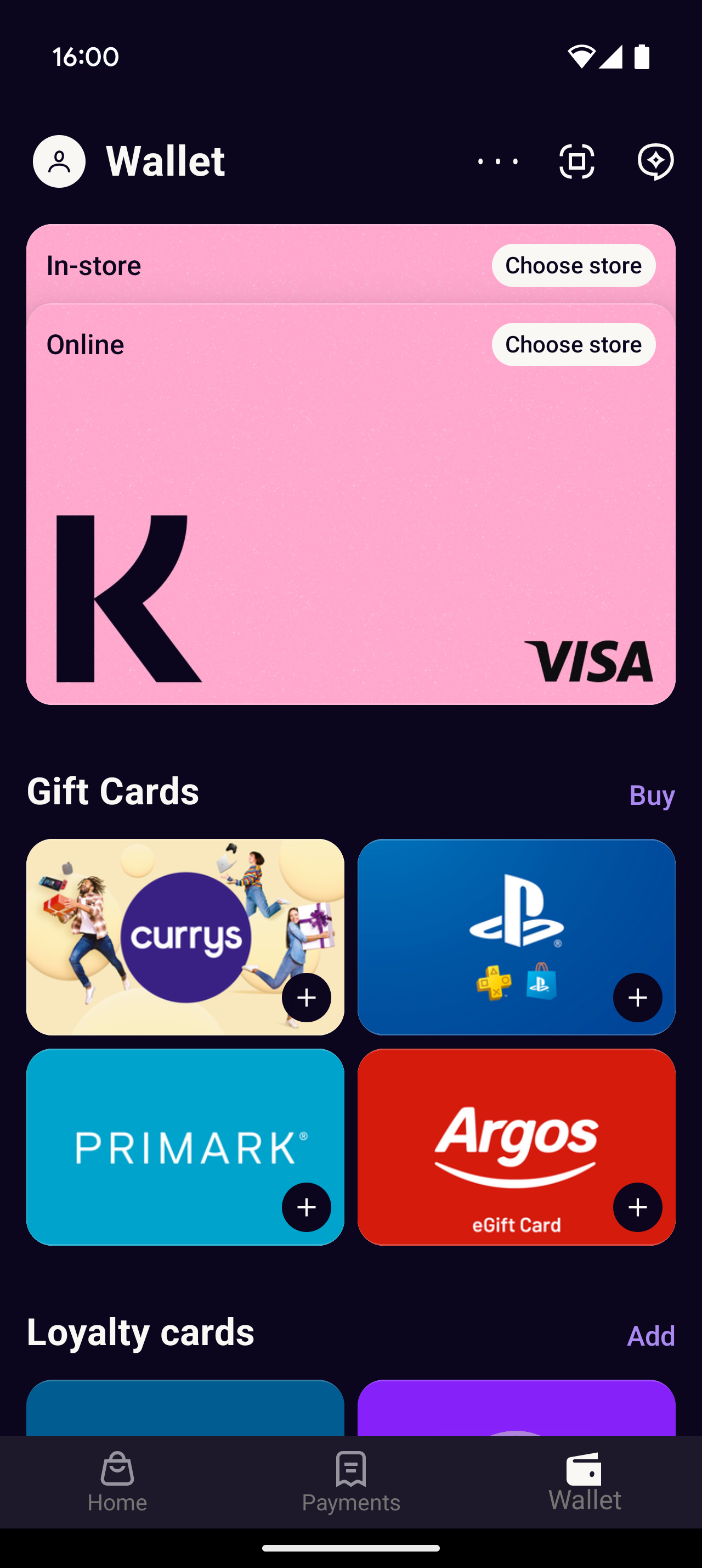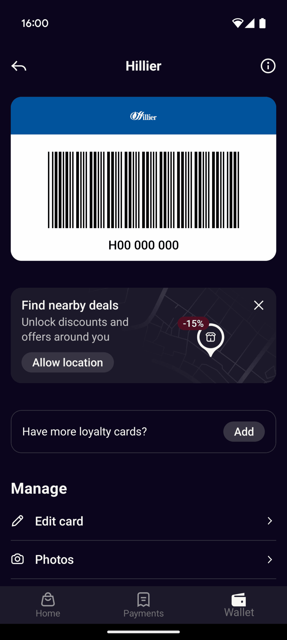 Tap the ‘Add’ word for Loyalty Cards (located on the right side of the wallet homepage) to add a new card.