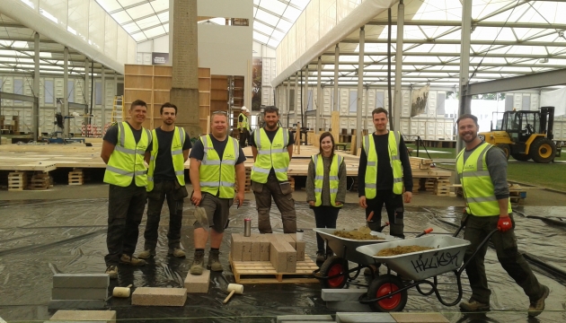 The MJT Landscapes team, together with Caitlin McLaughlin, on build day one of ‘Spring’ by Hillier for Chelsea Flower Show 2017