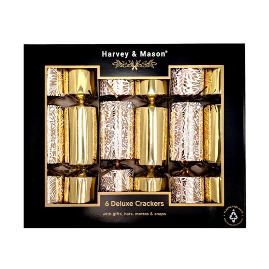 Harvey & Mason Deluxe Gold Christmas Crackers Pack Of 6