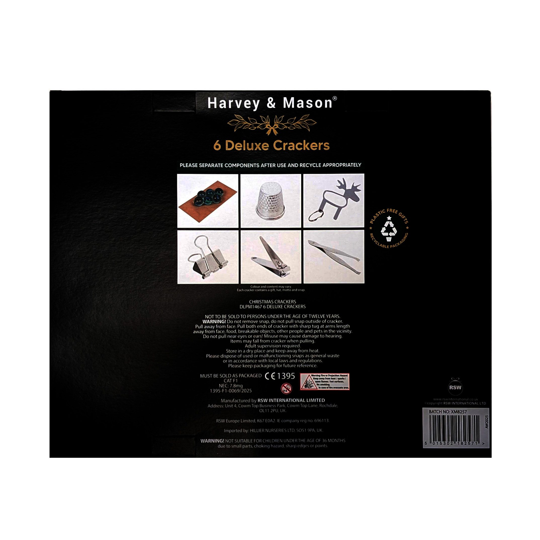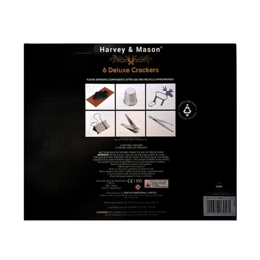 Add a touch of elegance to your festive celebrations with the Harvey & Mason Deluxe Gold Christmas Crackers. Beautifully presented in a classic gold design, these crackers are the perfect finishing touch to your Christmas table. Each cracker is filled with a fun gift, a colourful party hat, and a cheerful motto, complete with the traditional snap to keep the festive spirit alive.