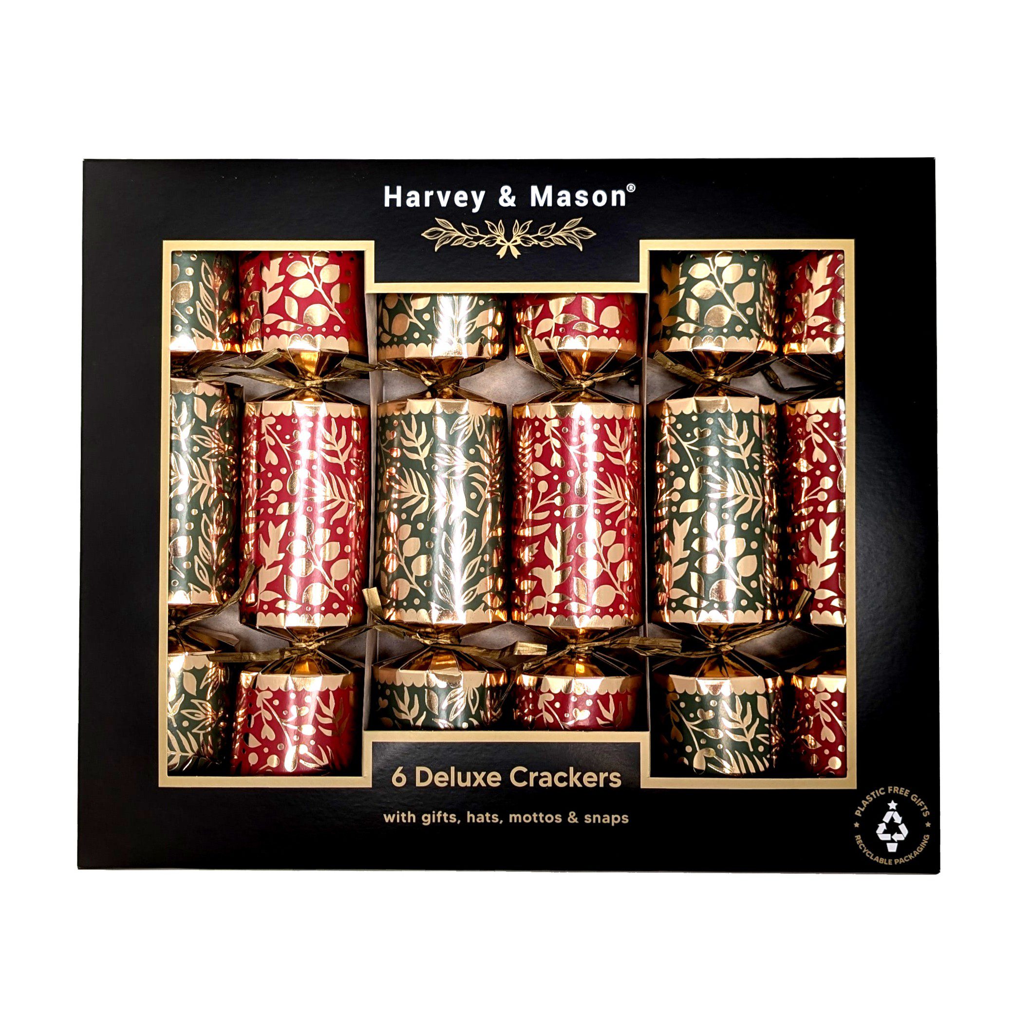 Harvey & Mason Deluxe Red & Green Christmas Crackers Pack Of 6
