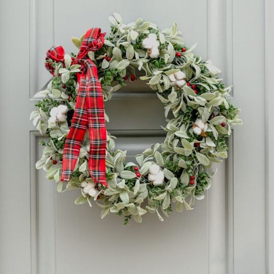 • Authentically styled eucalyptus and berry wreath for a classic Christmas look