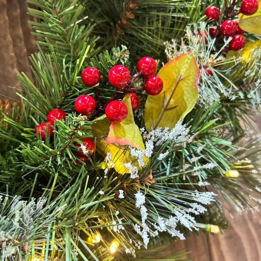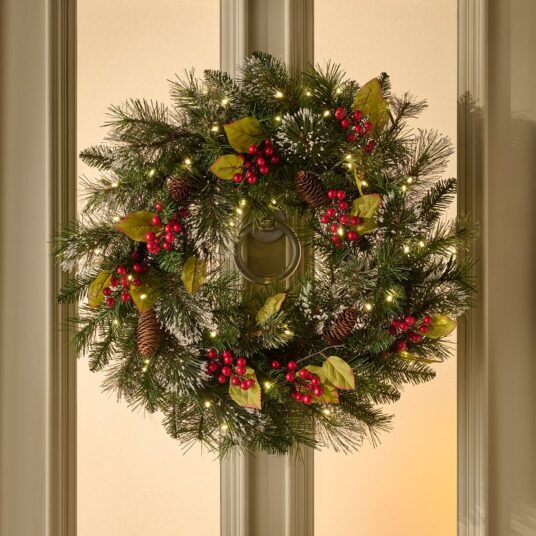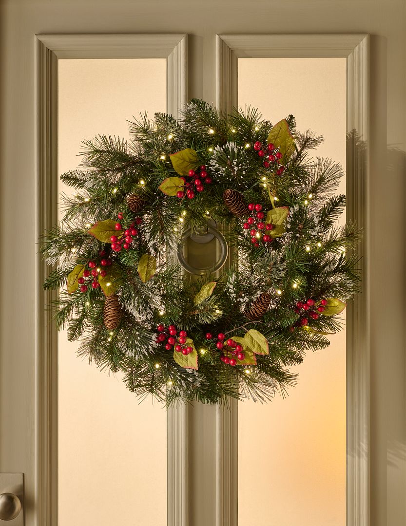 BOSK Frosted Pine 24″ Christmas Wreath With 50 Warm White Lights