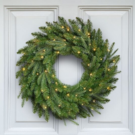BOSK Rivington Fir 24″ Christmas Wreath With 50 Warm White Lights