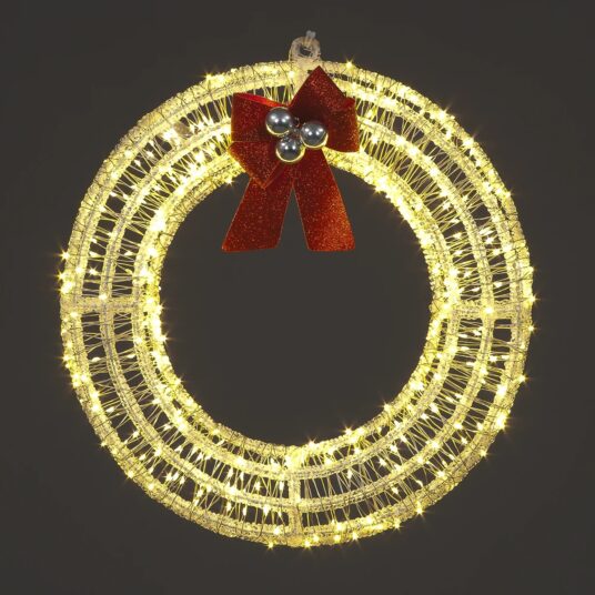 Bring festive cheer to your home with the SnowTime Light Up Christmas Wreath. Measuring 38cm, this charming acrylic 2D wreath is beautifully decorated with a classic red bow and sleigh bells, while 240 warm white LEDs (with 10% flashing for a twinkling effect) create a welcoming seasonal glow. Perfect for doors, walls, or windows, it’s a timeless Christmas decoration that adds warmth and sparkle to your festive display.