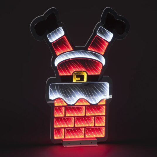 Bring festive fun to your home with the SnowTime Light Up Santa in Chimney Infinity Decoration. Standing 60cm tall, this playful display features Santa’s legs sticking out of a glowing chimney, creating a whimsical scene that’s sure to delight both children and adults. With its clever infinity light effect, the decoration appears to sparkle endlessly, making it a real showstopper for your Christmas décor indoors.