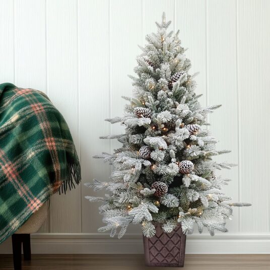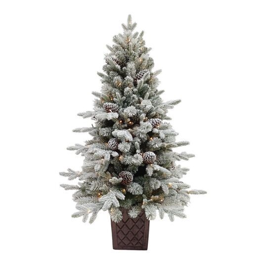 BOSK Frosted Winterfold Fir – 4.5ft Christmas Tree With 150 Warm White Leds