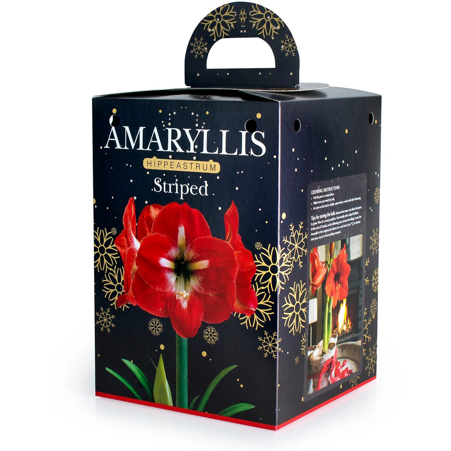 Amaryllis is a perfect winter gift. These beautiful blooms will give joy year after year. Presented in attractive packaging, this Amaryllis (Hippeastrum) comes complete with a pot and soil.