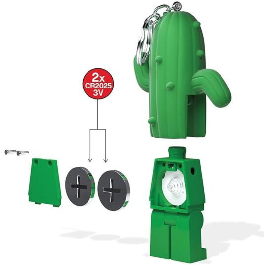 Bring a touch of fun and practicality to your everyday essentials with the LEGO® Iconic Cactus Boy Keyring Torch. This quirky LEGO minifigure keychain light features movable arms and a bright LED light in each foot, making it as handy as it is playful. Simply press the button on the body to switch on the lights, perfect for finding your way in the dark or adding a bit of character to your bag, purse, or keys. Complete with batteries included, it’s ready to shine straight out of the box.