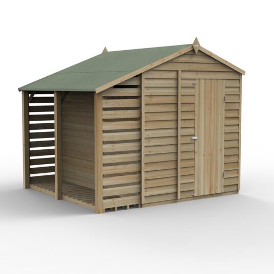 The Forest Garden 4LIFE Apex Garden Shed 6x8ft with Single Door, two windows, and an integrated Lean-To offers a smart, space-efficient solution for storing everything from garden tools to bulky kit like wheelbarrows and logs. The included Lean-To provides extra sheltered storage without taking up valuable internal space and can be built on either side of the shed to suit your garden layout. Built with fully modular panels, this shed arrives in smaller, easier-to-handle sections while delivering a sturdier, more adaptable structure once assembled. With installation included, you can enjoy a high-quality garden building without the hassle of construction.