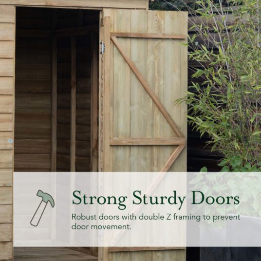 Built using fully modular panels and 30% thicker framing, this shed is far sturdier than standard overlap models. The straight-cut overlap boards are pressure treated for long-lasting protection, giving you an impressive 25-year anti-rot guarantee with zero need for annual preservative treatments. A solid timber floor handles heavier loads with ease, while the hardwearing felted roof keeps the interior dry and secure. Thoughtful features such as hidden hinges, a double-Z braced door, and the option of left or right door hanging make the 4LIFE Shed both practical and secure. Delivered using Forest Garden’s premium White Glove Service, it arrives exactly where you want it—packaging removed and ready for assembly.