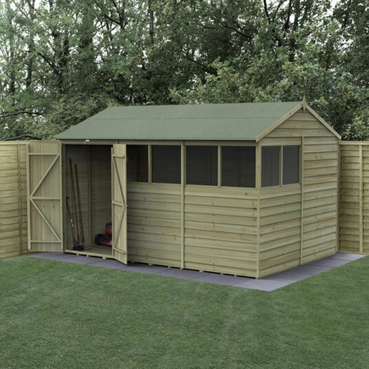 Beckwood 10×8 Reverse Apex Shed – 4 Windows – Double Door with Installation