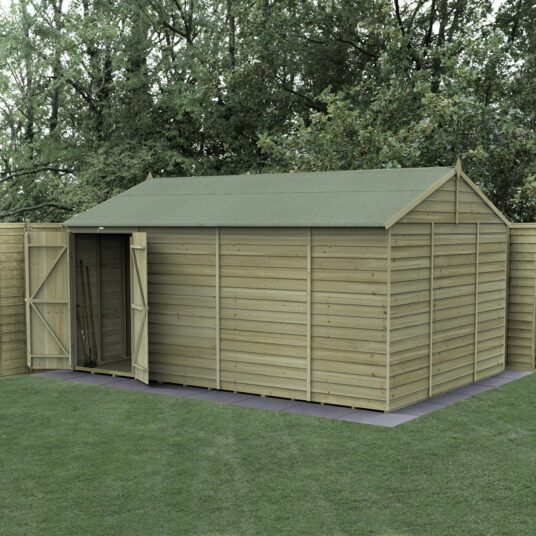 The Forest Garden 4LIFE Reverse Apex 15x10ft Shed combines traditional British craftsmanship with modern, robust design. Handcrafted in the UK using FSC® certified timber, this shed offers a large, versatile working area, ideal for garden storage or as a spacious workshop. Its fully modular panel construction allows for easier assembly, stronger structure, and flexible configuration. Designed with practicality in mind, the 4LIFE range is built to last, providing a secure and reliable solution for all your outdoor storage needs.