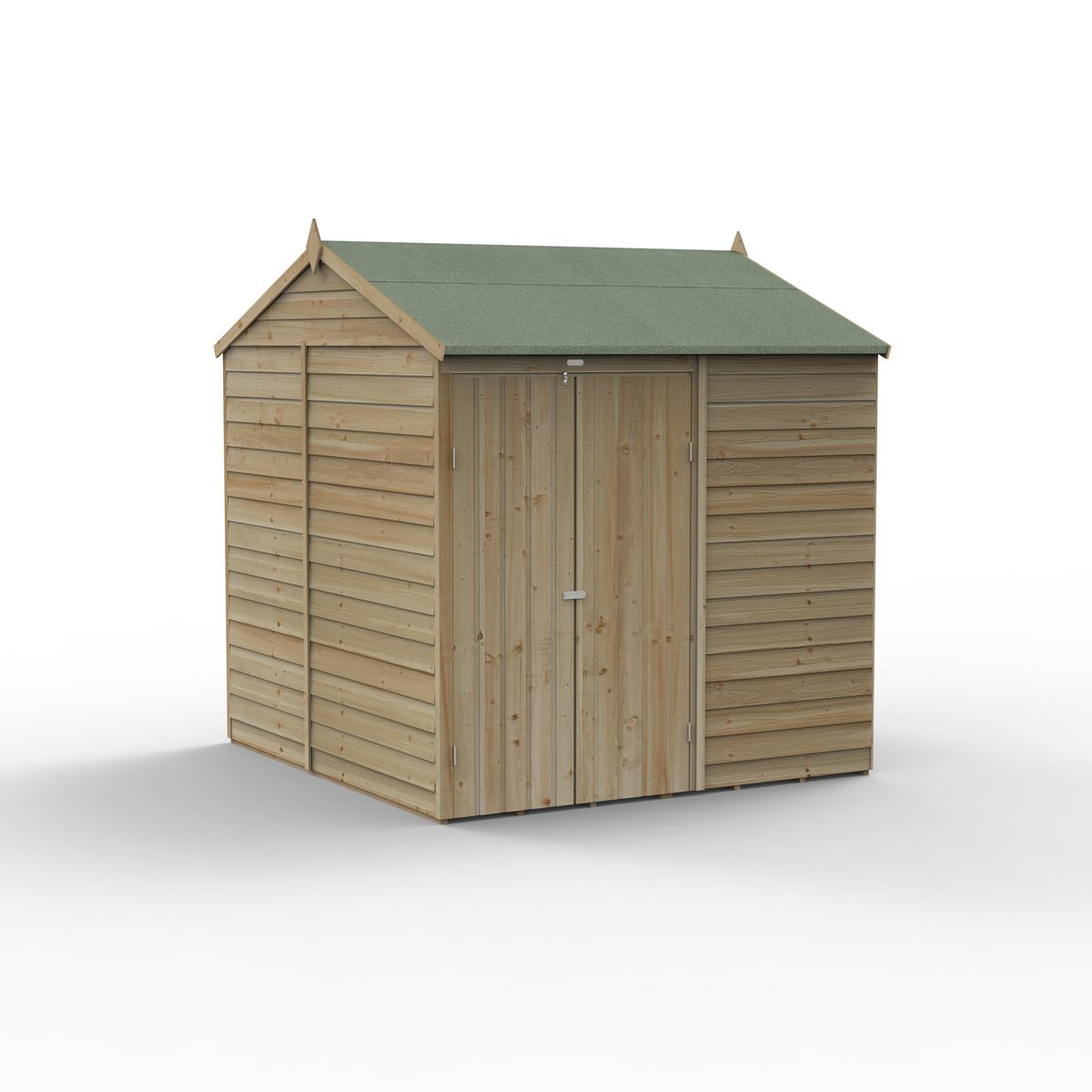 The Forest Garden 4LIFE 7x7ft Reverse Apex Garden Shed with Double Doors and No Windows combines dependable British craftsmanship with a stronger, smarter design. Built in the UK using FSC® certified timber, this shed is made to handle the ever-changing British weather while offering secure, spacious storage for garden equipment, tools, and outdoor essentials. Its fully modular construction uses smaller, stronger panels, providing easier assembly, enhanced versatility, and a more robust overall build. With generous headroom and wide double doors, moving around inside is effortless, making this shed both practical and comfortable to use.