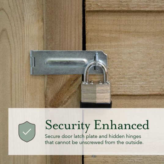 Constructed from straight-cut, pressure-treated overlap boards, the shed allows natural timber movement while promoting effective rainwater run-off. With 30% thicker framing than standard sheds and a solid timber floor, it can comfortably support heavier items. The pressure treatment provides a 25-year anti-rot guarantee, with no annual maintenance required. The double-Z framed double doors offer added strength, while hidden hinges and a padlock-ready hasp and staple latch enhance security. The roof is made from durable solid sheet material with a green mineral felt finish for reliable, long-term weather protection. Delivered with Forest Garden’s White Glove Delivery Service, your shed is placed exactly where you want it, with all packaging removed for complete convenience.