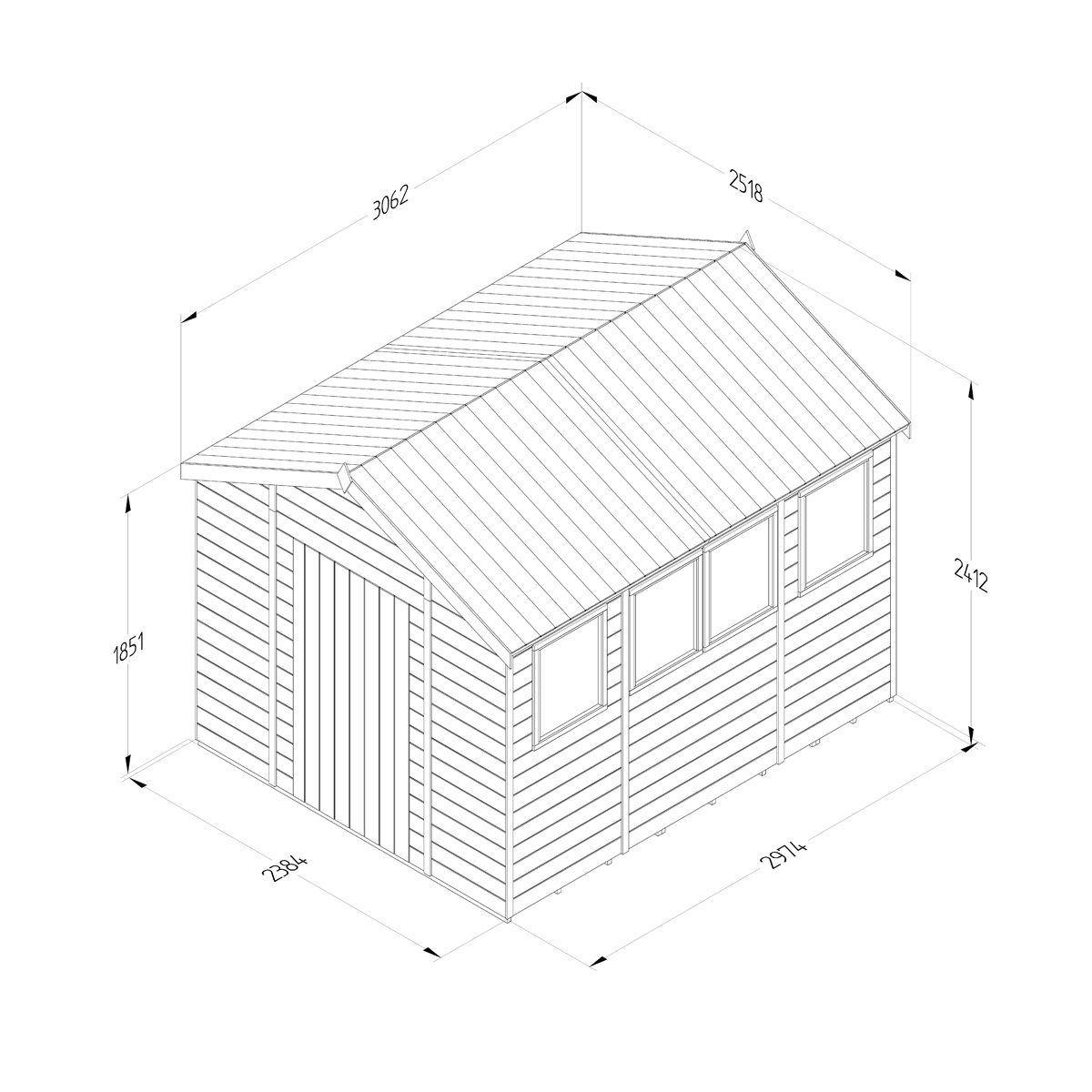 Timberdale 10×8 Apex Shed – Four Windows