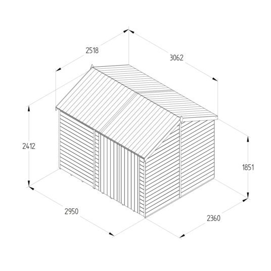 Timberdale 10×8 Reverse Apex Shed No Window – Double Door with Installation