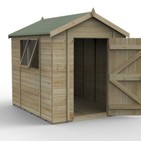 The Forest Garden Timberdale 8x6ft Apex Garden Shed combines traditional design with premium craftsmanship, offering a durable and stylish storage solution for your garden. Built from high-quality timber, it provides ample space for storing gardening tools, lawn equipment, and outdoor essentials, while also being large enough to use as a workshop. Its robust construction and classic apex roof ensure lasting performance and an attractive appearance that complements any garden setting.