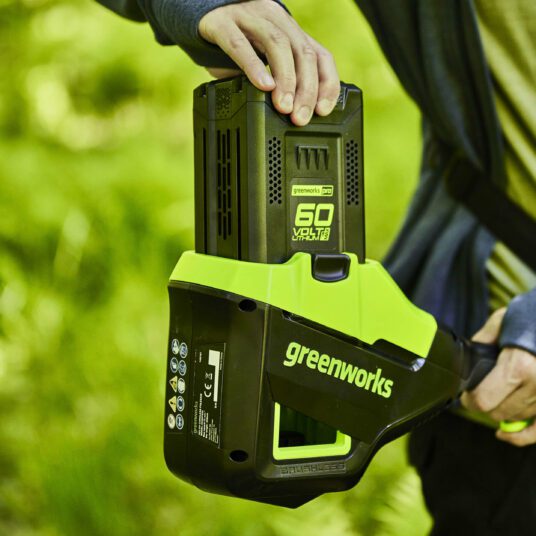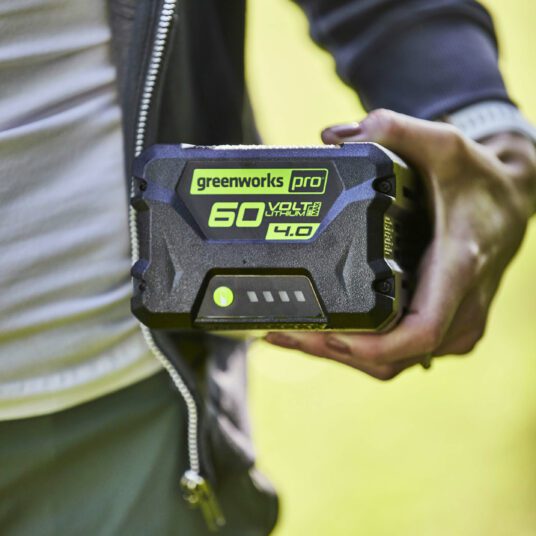 As part of the Greenworks 60V family, the battery can be used in a range of different tools, from lawn mowers, hedge trimmers, chainsaws and even powered barrows.