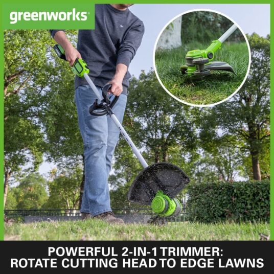 Lightweight and cordless, this trimmer provides excellent manoeuvrability and comfort during use. Its robust design makes it ideal for maintaining garden borders, paths, and hard-to-reach areas. Whether you’re trimming grass or light weeds, the Greenworks 24V line trimmer offers reliable performance with the convenience of battery power.