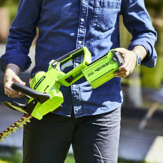 The Greenworks 40V 61cm Hedgecutter is a great addition to your 40V range and is the ideal tool for those with medium to larger hedge sizes. The combination of 61cm blade length and its low weight means this tool will easily replace your current hedge cutter, and give you the benefits of cordless, and the rest of the 40V family. Another 21 tools all utilise the same battery, and once you have the battery and charger you can buy all the tools without buying more expensive batteries – it keeps the cost of tool ownership down while giving you a complete tool system.