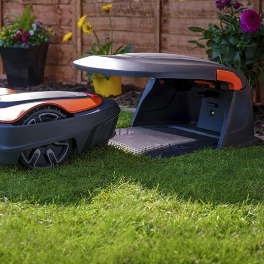 The Flymo EasiLife house is easy to assemble and attaches over the charging station to provide ideal protection against all weathers.