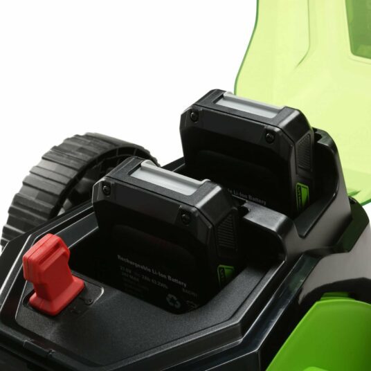 Cut medium-sized lawns in less time with the 48V 41cm push lawnmower. As a part of our 24V Greenworks product line, this lawnmower is powered using two interchangeable high-performance 24V lithium-ion batteries than can be used to power any other product in our 24V or 48V range. In line with the wide 46cm cutting path, this lawnmower features a large capacity 55L collection bag, 4 cutting actions, and 6 easily selectable cutting heights for pristine lawn care.