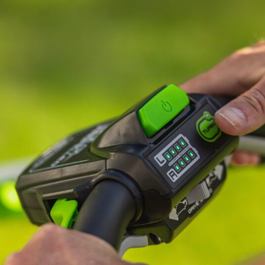 Powered by an advanced 60V lithium-ion battery the machine offers high performance and long runtimes, making it a true petrol alternative, without the emissions, vibration or noise.