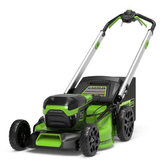 The GreenWorks Pro GD60LM51SPK4 lawn mower employs a powerful 60 volt lithium-ion battery and high efficiency brushless motor which provides more power, torque, quiet operation and longer motor life. The push start motor provides quick and effortless start-ups and eliminates the hassle of recoil starts. Fitted with a fully charged 4Ah battery, the mower will give you up to 28 minutes of run time. The dual battery slots allow two batteries to be mounted at once, offering extended runtimes without stopping.