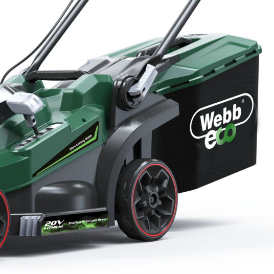 The Webb Eco 20V 33cm Cordless Rotary Lawnmower is a versatile solution ideal for small to medium lawns. With a 33cm cutting width, adjustable cutting heights, and a 4Ah 20V battery, it offers up to 35 minutes of run-time per charge. The 35-litre mesh collection box enhances airflow, reducing trips to the compost heap. Weighing only 13.0kg, it’s lightweight and manoeuvrable, featuring single-lever height adjustment. Backed by a 3-year guarantee and UK-based customer service, it’s a space-saving, powerful, and easy-to-use lawnmower for efficient lawn maintenance.