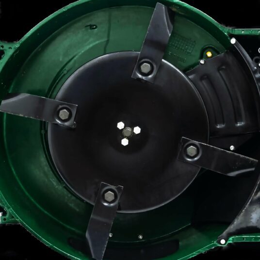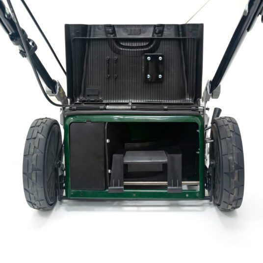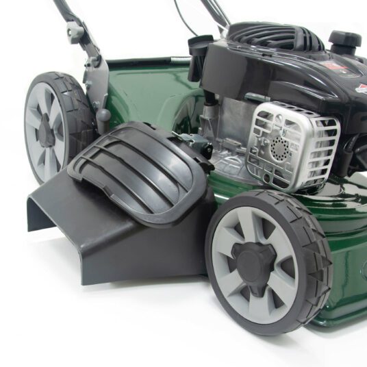 - LARGE BALL BEARING BACK WHEELS – with its larger rear wheels, this mower provides greater manoeuvrability, particularly on hard ground, due to its increased pushing power compared to the smaller wheels.