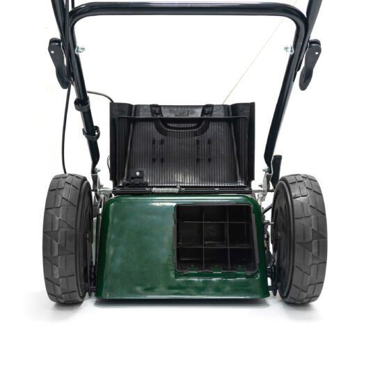 - LARGE BALL BEARING BACK WHEELS – with its larger rear wheels, this mower provides greater manoeuvrability, particularly on hard ground, due to its increased pushing power compared to the smaller wheels.