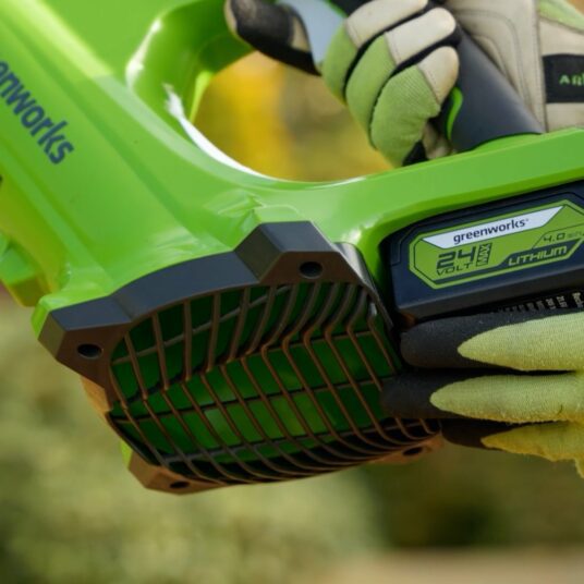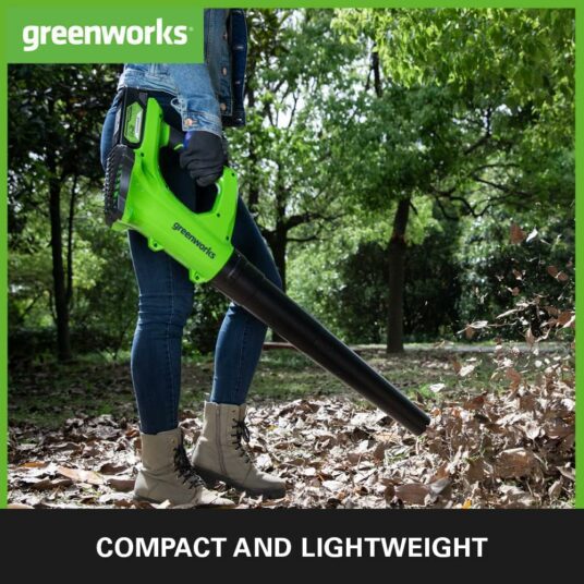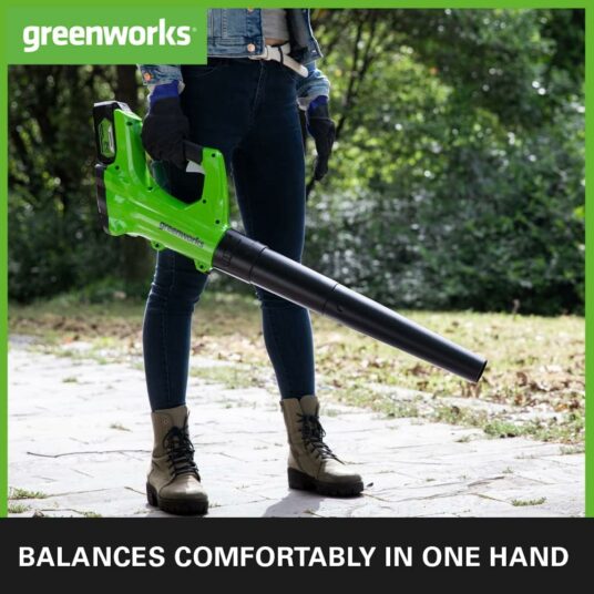 Free your garden from leaves, dirt and debris with the lighweight, comfortable and compact 24 volt battery-powered axial blower from GreenWorks.