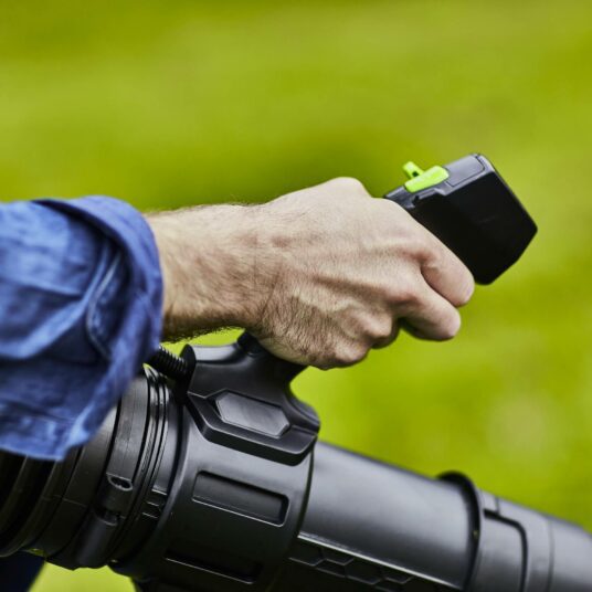 Free your property from leaves and dirt with Greenworks’ battery powered Backpack Blower. Because of its low weight, axial fan and thought-out technology, this blower can manage soggy leaves instantaneously. Thanks to its padded and adjustable harness it provides comfort for multiple users. It has a brushless motor with variable speed, boost function and cruise control.