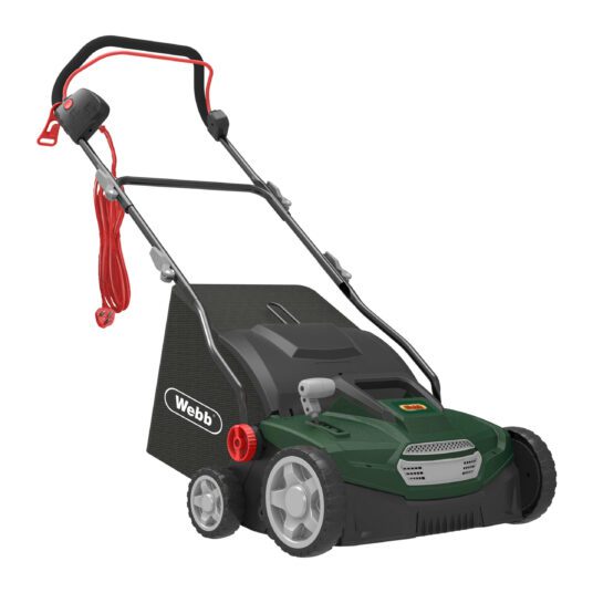 Equipped with a premium 1500-watt Motor, offering a sizeable 36cm working width and supplied with a 45-litre Collector, the top-quality Webb WEESR Electric Scarifier is a powerful, fast and convenient way to refresh your lawn! It features large wheels for easy pushing; an adjustable working height for superior flexibility of use; and space-saving foldable handlebars.