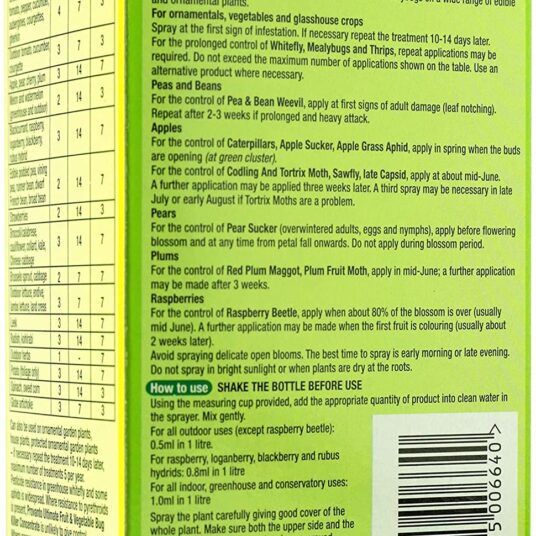 Provanto® Ultimate Fruit & Vegetable Bug Killer Concentrate is a formulation previously only available to the professional market. It can be used on a comprehensive range of fruit and veg plants such as apples and pears, runner beans, lettuce and many more.