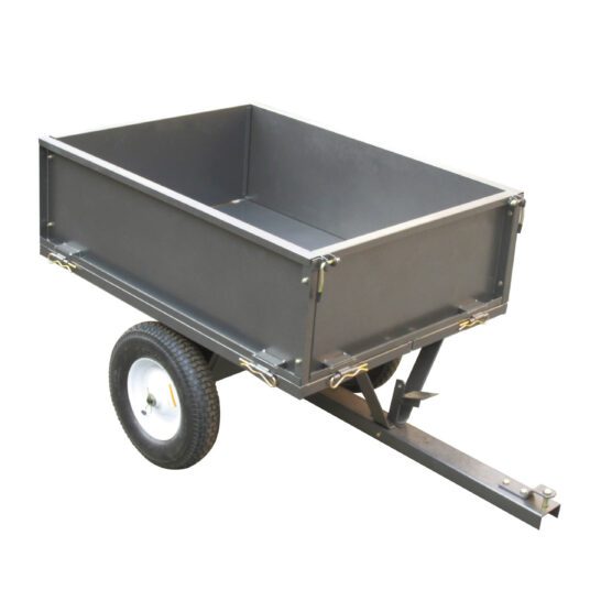 Further key features include removable sides for straightforward loading; ball-bearing wheel-mounts for smooth operation; and a universal hitch-pin that facilitates use with pretty much any make or model of garden-tractor.