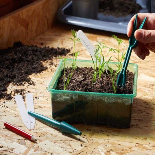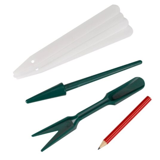 This handy Widger, Dibber, Pencil & Plant Label Set is ideal for sowing, pricking out, and transplanting seedlings with care and precision. Designed to make light work of delicate gardening tasks, the widger and dibber help you lift and replant young plants without damaging roots. Supplied with reusable plant labels and a marking pencil, it’s easy to keep track of what you’ve planted and where.