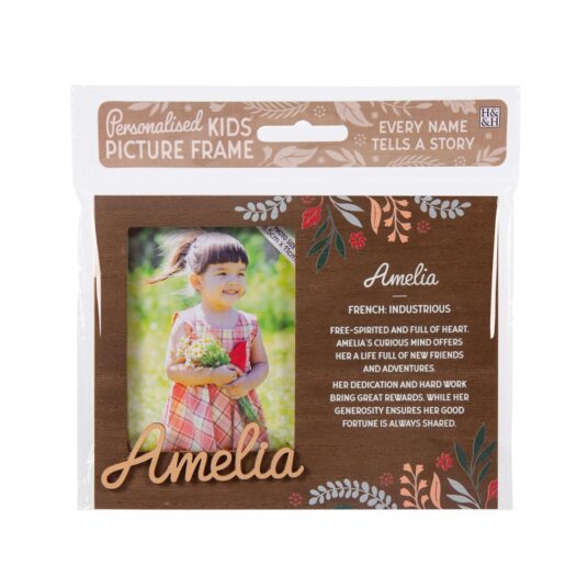 Stylish wooden laminate frame to display your favourite photo. Each frame features the personalised derivation of your child's name alongside a fun personality profile for their name. In a contemporary design style and dark or light coloured wood laminate to suit all home decor, the frame is easy to hang or display and makes the ultimate personalised gift.