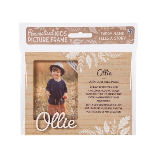 Stylish wooden laminate frame to display your favourite photo. Each frame features the personalised derivation of your child's name alongside a fun personality profile for their name. In a contemporary design style and dark or light coloured wood laminate to suit all home decor, the frame is easy to hang or display and makes the ultimate personalised gift.